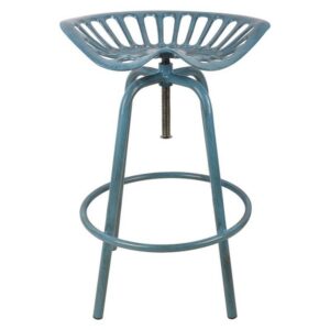 כיסא בר מעוצב בהשראת כיסא טרקטור, במראה רטרו, בצבע כחול.נוח לישיבה, בעל מושב מתכוונן ומשענת לרגליים, מבית ESSCHERT DESIGN, הולנד *המוצר עלול להחליד במגע עם מים