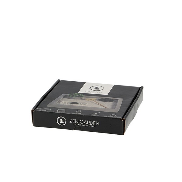 גן זן יפני לעתים הוא חלק מגן גדול יותר, מאחוריו מסתתרת פילוסופיה. בתרבות המערבית הגן הזה מוכר בעיקר כסוג של מדיטציה. המילה זן (או צ'אן) מקורה מהבודהיזם והמשמעות היא שלווה פנימית וריכוז. הסט מורכב ממגש, חול לבן, אבנים, אדנית ומגרפה מעץ. מתאים למשרד ולבית. מבית ESSCHERT DESIGN, הולנד