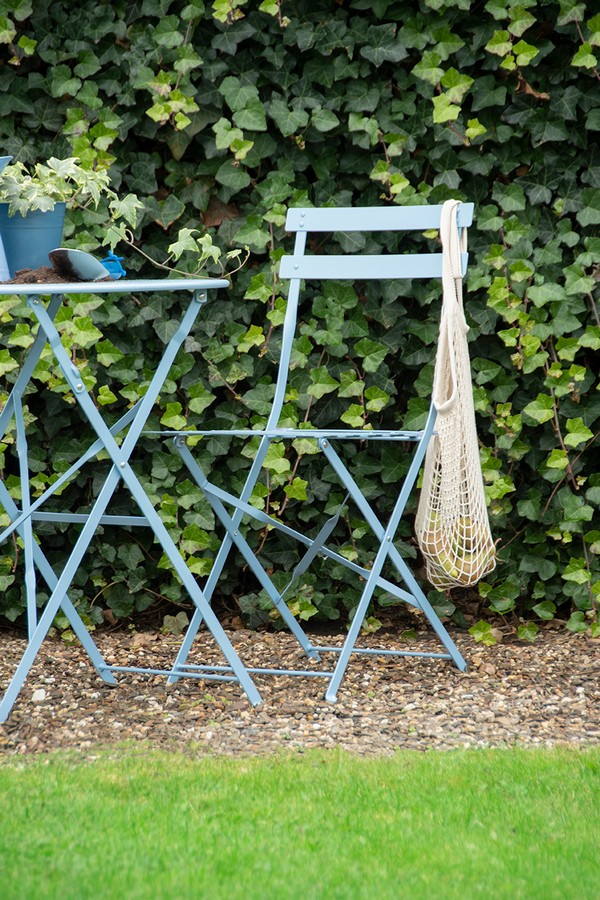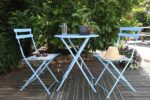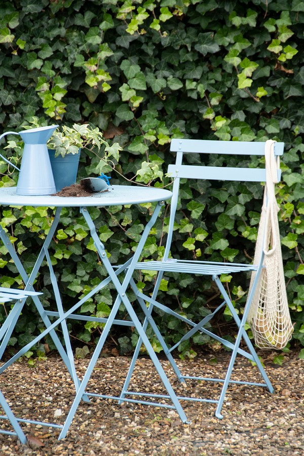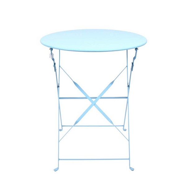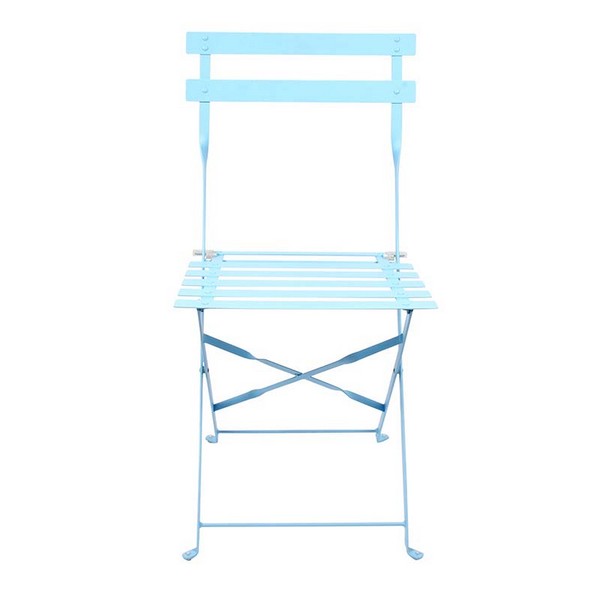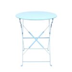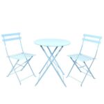 מערכת ישיבה ביסטרו מתקפלת, בגוון כחלחל, לישיבה נוחה ונעימה, מתאים במיוחד למרפסות, ניתן לאחסן בקלות ובמהירות. כולל שולחן ושני כיסאות. מבית ESSCHERT DESIGN, הולנד *המוצר עלול להחליד במגע עם מים