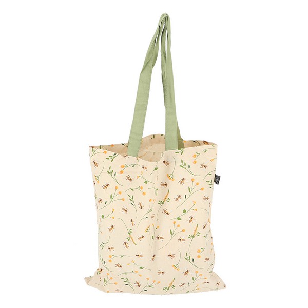 תיק קניות מכותנה, עם הדפס דבורים, ניתן לשימוש חוזר ומהווה חלופה עמידה לשקית ניילון. ניתן לקפל בקלות. קיבולת מקס': 9 ק"ג. מבית ESSCHERT DESIGN, הולנד
